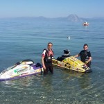 Οι δύο Αθλητές του Jet Ski χάρισαν ένα μοναδικό θέαμα σε όσους απολάμβαναν τον πρωινό τους καφέ στο προάστιο της Πάτρας, με τα κόλπα τους, αφού το Kawasaki 750 και το Yamaha 650 “εκμεταλεύτηκαν” την πολύ ήρεμη θάλασσα.