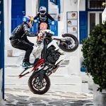 Όχι δεν εννοώ ποτά, ούτε ξέφρενα πάρτι μέχρι πρωίας… Αλλά βόλτες και stunts με μοτοσυκλέτες στα σοκάκια της Μυκόνου!