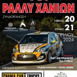 Η ΑΛΑ Χανίων διοργανώνει το 13ο Ράλλυ Χανίων που θα διεξαχθεί το Σάββατο 20 Απριλίου και την Κυριακή 21 Απριλίου 2024. Στον αγώνα θα συμμετάσχουν 17 πληρώματα.