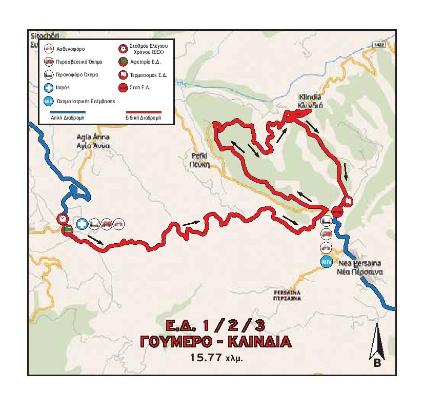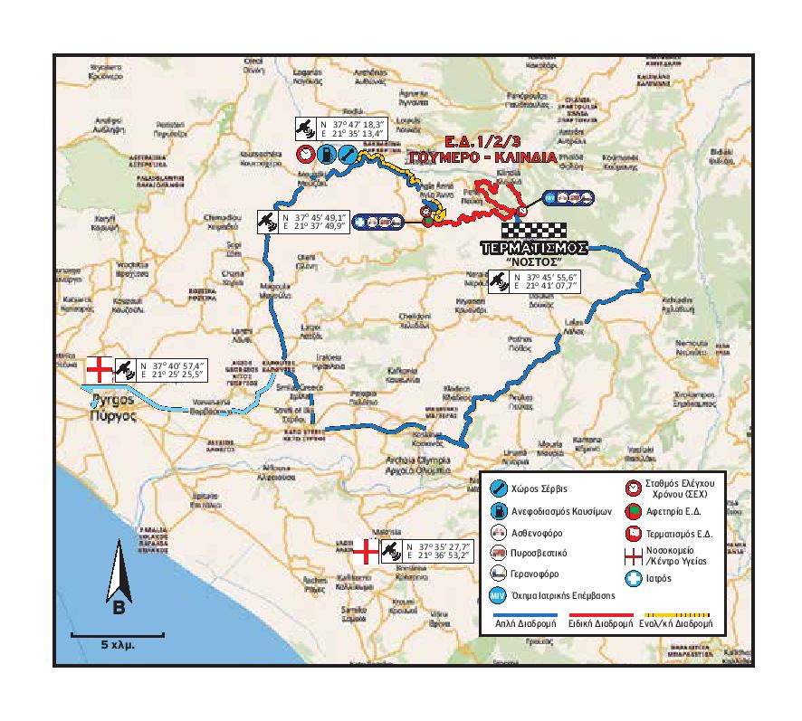 Πεδίο δράσης του αγώνα θα αποτελέσει η διαδρομή «Γούμερο-Κλινδιά», μήκους 15,77 χιλιομέτρων, μια ειδική η οποία χρησιμοποιήθηκε για πρώτη φορά στο πρωταθληματικό Ολυμπιακό Ράλλυ τον περασμένο Απρίλιο. Την Κυριακή 16 Νοεμβρίου, το πρώτο αγωνιστικό θα αναχωρήσει από το Service Park, το οποίο θα βρίσκεται στο χώρο της Πανήγυρης «Βάραγκα» στις 08:30 και θα πραγματοποιήσει το πρώτο πέρασμα από τη διαδρομή. Στη συνέχεια θα ακολουθήσουν δύο ακόμη διελεύσεις από την Ειδική Διαδρομή «Γούμερο-Κλινδιά», με το πρώτο αγωνιστικό να τερματίζει στο Κέντρο «Νόστος» στις 14:30. Η απονομή των επάθλων είναι προγραμματισμένη για τις 16:30 στο Κέντρο «Νόστος» στη Νέα Πέρσαινα. Ο αγώνας περιλαμβάνει συνολικά 47,31 αγωνιστικά χιλιόμετρα, ενώ το συνολικό μήκος του ανέρχεται σε 185,19 χλμ.