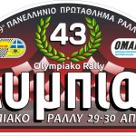 Με 44 πληρώματα θα πραγματοποιηθεί η πρεμιέρα του Πανελληνίου Πρωταθλήματος Ράλλυ Χώματος στο Νομό Ηλείας το διήμερο 29 και 30 Απριλίου. Το 43ο Ολυμπιακό Ράλλυ ανοίγει την αυλαία του κορυφαίου θεσμού αγώνων ράλλυ στη χώρα μας, προσελκύοντας αρκετές και ποιοτικές συμμετοχές. Ο αγώνας διεξάγεται από το αθλητικό Σωματείο Αγωνιστική Ολυμπιακή Λέσχη Αυτοκινήτου Πύργου (ΑΟΛΑΠ). Συνδιοργανωτές του αγώνα είναι η Περιφέρεια Δυτικής Ελλάδος (Περιφερειακή Ενότητα Ηλείας), η Π.Ε.Δ.Δ.Ε (Περιφερειακή Ένωση Δήμων Δυτικής Ελλάδος), ο Δήμος Πύργου και ο Δήμος Αρχαίας Ολυμπίας. Θεσμικοί υποστηρικτές είναι η ΔΗΚΕ Πύργου, το Επιμελητήριο Ηλείας και ο Εμπορικός Σύλλογος Πύργου, Ερμής.