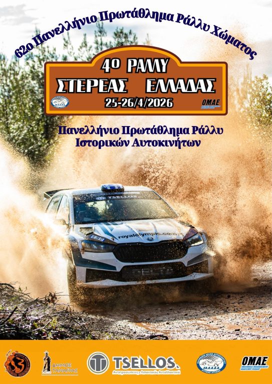 Τον εντυπωσιακό αριθμό των 73 συμμετοχών, που αποτελεί ρεκόρ των τελευταίων ετών για χωμάτινο αγώνα ράλλυ, συγκέντρωσε το 4ο Ράλλυ Στερεάς Ελλάδας, το οποίο θα διεξαχθεί στις 25 και 26 Απριλίου. Ο αγώνας αποτελεί τον δεύτερο γύρο του Πανελληνίου Πρωταθλήματος Ράλλυ Χώματος και για άλλη μια χρονιά προσμετράει και στο Πανελλήνιο Πρωτάθλημα Ράλλυ Ιστορικών αυτοκινήτων.