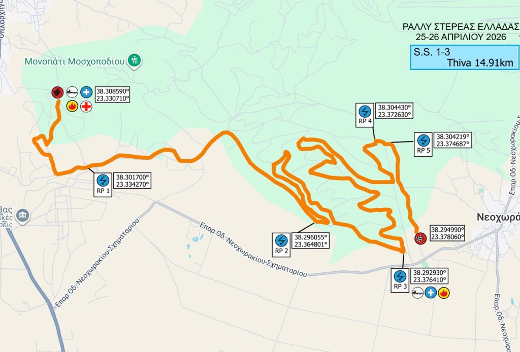 Το αγωνιστικό κομμάτι του αγώνα θα διεξαχθεί την Κυριακή 26 Απριλίου. Το πρώτο αγωνιστικό αυτοκίνητο θα αναχωρήσει στις 09:30 από τις εγκαταστάσεις του 5ου Γυμνασίου Θήβας «Πελοπίδειο» και θα αγωνιστεί στην εναρκτήρια Ειδική Διαδρομή του αγώνα, «Θήβα», μήκους 14,91 αγωνιστικών χιλιομέτρων. Η συνέχεια περιλαμβάνει την Ειδική Διαδρομή «Νεοχωράκι», μήκους 13,62 χιλιομέτρων, η οποία θα διεξαχθεί στις 10:26, ενώ το πρωινό loop ειδικών ολοκληρώνεται με την Ειδική Διαδρομή «Μοσχοπόδι», μήκους 17,71 χιλιομέτρων, η οποία θα εκκινήσει στις 11:09. Τα πληρώματα θα επιστρέψουν για ημίωρο Service στη Θήβα και στις 12:39 θα αναχωρήσουν από το χώρο του Service Park προκειμένου να αγωνιστούν και πάλι στις Ειδικές Διαδρομές «Θήβα» (13:02) και «Νεοχωράκι» (13:35). Power Stage του αγώνα, θα είναι η Ειδική Διαδρομή «Μοσχοπόδι», στην οποία το πρώτο αγωνιστικό θα εκκινήσει στις 14:18. Ο τερματισμός του αγώνα θα πραγματοποιηθεί στις 14:58 στο Μουσικό Ωδείο Θήβας, ενώ στην Πλατεία Κεραμοπούλου, έμπροσθεν του Μουσείου της πόλης, θα λάβουν χώρα οι απονομές στις 17:00.