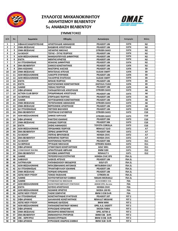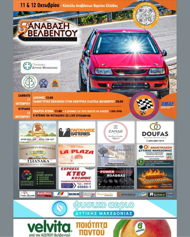 Με 58 συμμετοχές θα διεξαχθεί η 5η Ανάβαση Βελβεντού στις 11 και 12 Οκτωβρίου, αγώνας που προσμετρά στο Κύπελλο Αναβάσεων Βορείου Ελλάδος.