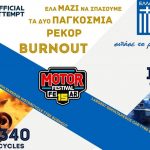 160 αυτοκίνητα και 340 μοτοσυκλέτες θα επιδιώξουν να σπάσουν το ρεκόρ Guinness στο Burn Out το τριήμερο 28-30/9 στο Ολυμπιακό Στάδιο