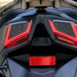 Ο χώρος κάτω από τη σέλα είναι ευρύχωρος και πολύ χρηστικός, ενώ κάλλιστα μπορεί να φιλοξενήσει ένα full face κράνος μαζί με άλλα αντικείμενα. Πέραν του απόλυτα επίπεδου πατώματος, η χρηστικότητα αυξάνεται κατακόρυφα μέσω μίας παροχής ρεύματος USB στην ποδιά, την τοποθέτηση της τάπας του δοχείου καυσίμου κάτω από το τιμόνι (άρα δεν απαιτείται άνοιγμα της σέλας) αλλά και με την ύπαρξη γάντζου ανάρτησης αντικειμένων, όπως επίσης και μιας θήκης για μικροαντικείμενα στη δεξιά πλευρά της ποδιάς.
