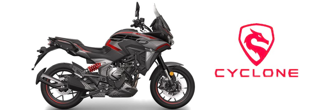 H Cyclone δημιουργήθηκε από τον κολοσσό Zonsen προκειμένου να αποτελέσει το premium brand του κινεζικού ομίλου. Η γκάμα της περιλαμβάνει μοτοσυκλέτες και scooter διάφορων κατηγοριών και είναι ικανή να καλύψει τις ανάγκες κάθε μοτοσυκλετιστή που θέλει να αποκτήσει ένα αξιόπιστο, άρτια κατασκευασμένο και εξοπλισμένο προϊόν. Κάθε μοντέλο Cyclone αποτελεί παράδειγμα καθαρού, λειτουργικού σχεδιασμού. Η αδρεναλίνη είναι η ακόρεστη επιθυμία να ανακαλύψεις το άγνωστο και τα προϊόντα της Cyclone είναι το αποτέλεσμα δεκαετιών εμπειρίας και εξέλιξης.