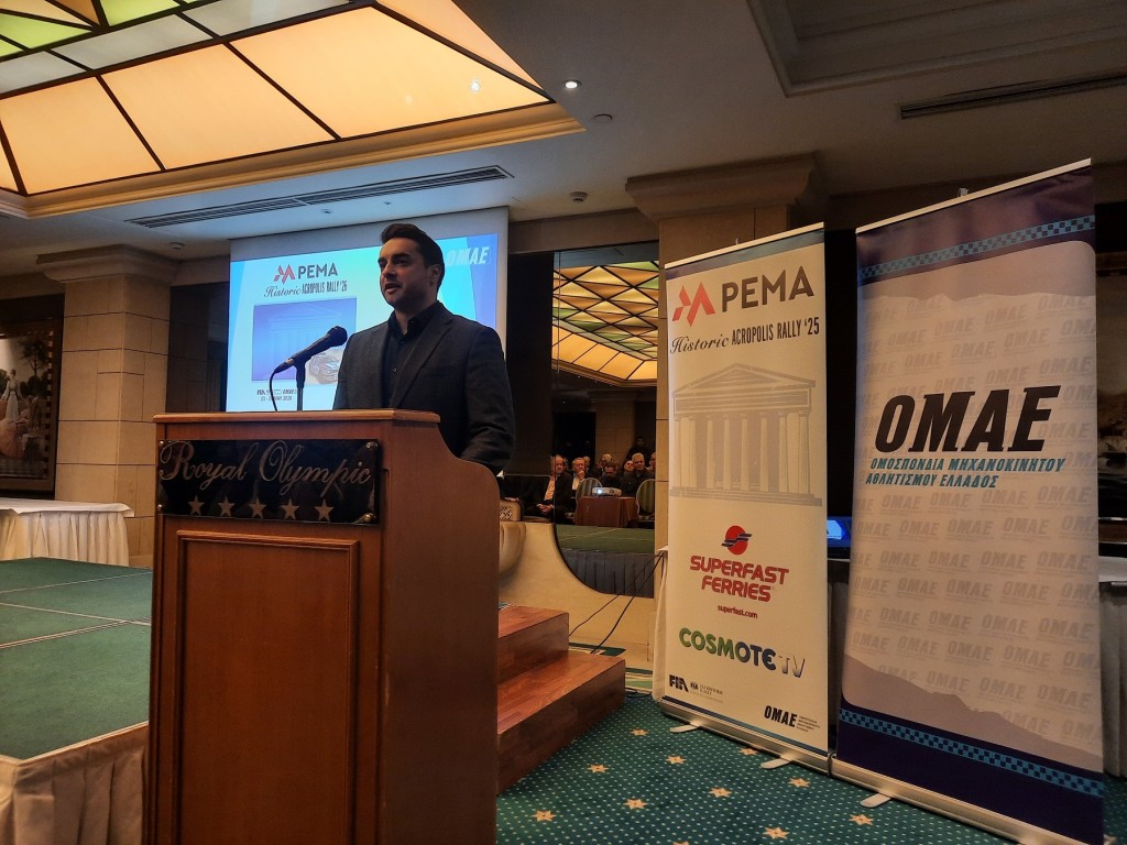 Στο χαιρετισμό του, ο αναπληρωτής Υπουργός Αθλητισμού, Γιάννης Βρούτσης καλωσόρισε τους παρευρισκόμενους και υπογράμμισε τη διαρκή στήριξη της Πολιτείας στον μηχανοκίνητο αθλητισμό, συγχαίροντας όλους τους αθλητές για τη συμμετοχή τους στο PEMA Ιστορικό Ράλλυ Ακρόπολις του 2025 και θέτοντας παράλληλα ψηλά τον πήχη για τη διοργάνωση του 2026.