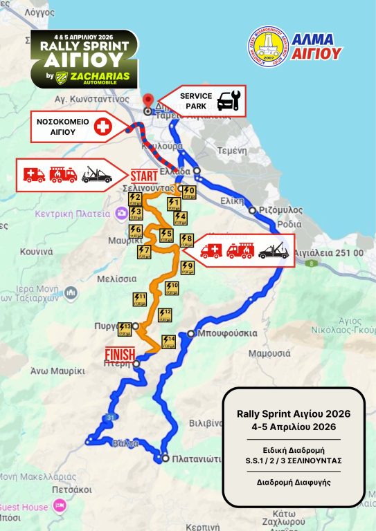 Το Rally Sprint Αιγίου 2026 υπόσχεται ένα αγωνιστικό διήμερο γεμάτο ένταση, θέαμα και δυνατές μάχες, με μια ειδική διαδρομή που θα δοκιμάσει οδηγούς και αυτοκίνητα στο όριο. Το ραντεβού δίνεται στο Αίγιο — τόσο στην ειδική διαδρομή όσο και στο λιμάνι, εκεί όπου χτυπά η καρδιά του αγώνα.