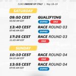 Το αγωνιστικό πρόγραμμα του τριημέρου ξεκινά από την Παρασκευή με τις συνολικά τέσσερις περιόδους δοκιμών, διάρκειας 30’ έκαστη.