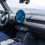 Το cockpit του νέου 5θυρου MINI Cooper θυμίζει την καθαρή σχεδιαστική φιλοσοφία του κλασικού Mini. Με τη στρογγυλή οθόνη OLED, όλες οι λειτουργίες του οχήματος μπορούν να ελέγχονται με την αφή ή με φωνητικές εντολής. Στην επάνω περιοχή εμφανίζονται πληροφορίες που σχετίζονται με το όχημα. Στο κάτω μέρος της οθόνης OLED, μπορούν να επιλέγονται απευθείας τα στοιχεία μενού Navigation, Media, Telephone και Climate.