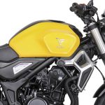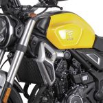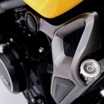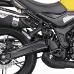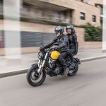 Το ατσάλινο πλαίσιο τύπου “διαμάντι” είναι τελείως νέο και η όλη του κατασκευή έχει μελετηθεί για να προσφέρει στο σύνολο υψηλού βαθμού ακαμψία. Το επίσης σωληνωτό ατσάλινο υποπλαίσιο είναι προσθαφαιρούμενο, ένα χαρακτηριστικό που δίνει μια επιπρόσθετη αξία στη μοτοσυκλέτα. Μπροστά υπάρχει ένα ανεστραμμένο πιρούνι διαμέτρου 41mm, ρυθμισμένο έτσι ώστε να προσφέρει σωστή πληροφόρηση και λειτουργία. Πίσω παρατηρούμε ένα ασύμμετρο αλουμινένιο ψαλίδι, όπου μέσω μοχλικού συστήματος εδράζεται ένα ρυθμιζόμενο ως προς την προφόρτιση μονό αμορτισέρ. Το σύστημα πέδησης χρησιμοποιεί δύο κυματιστά δισκόφρενα διαμέτρου 298mm μπροστά και 240mm πίσω, με διπίστονες δαγκάνες της Nissin και τελευταίας γενιάς δικάναλο ABS Bosch (9.1). Οι χυτές ζάντες των 17 ιντσών είναι αλουμινένιες, φιλοξενούν Radial ελαστικά διαστάσεων 110/70 – 150/60 αντίστοιχα και διαθέτουν από έξη διπλά μπράτσα. Διπλή είναι και η βάση έδρασης του μπροστινού φτερού, καθιστώντας το ακλόνητο στις υψηλές ταχύτητες και παρέχοντας την απαιτούμενη κατευθυντικότητα. Στο πίσω μέρος, o χαρακτήρας Scrambler τονίζεται από το ψηλά τοποθετημένο τελικό της εξάτμισης, με τις κλασσικές πινελιές σε σέλα και υποπλαίσιο να δένουν αρμονικά με το φουτουριστικό φωτιστικό σώμα και το στιβαρό αλουμινένιο ψαλίδι. Μια ακόμη σύγχρονη σχεδιαστική νότα αφορά στη βάση της πινακίδας και των φλας, τα οποία στηρίζονται πάνω στο ψαλίδι και όχι παραδοσιακά στο υποπλαίσιο.